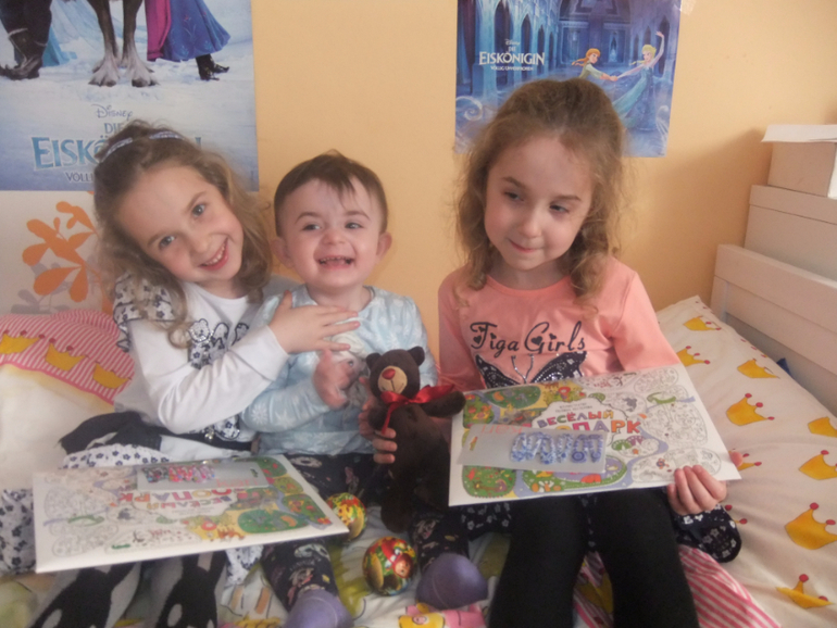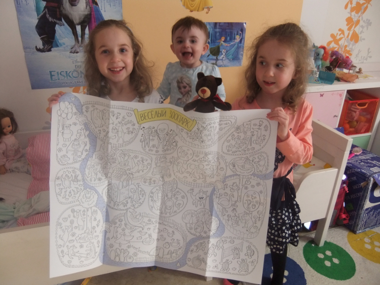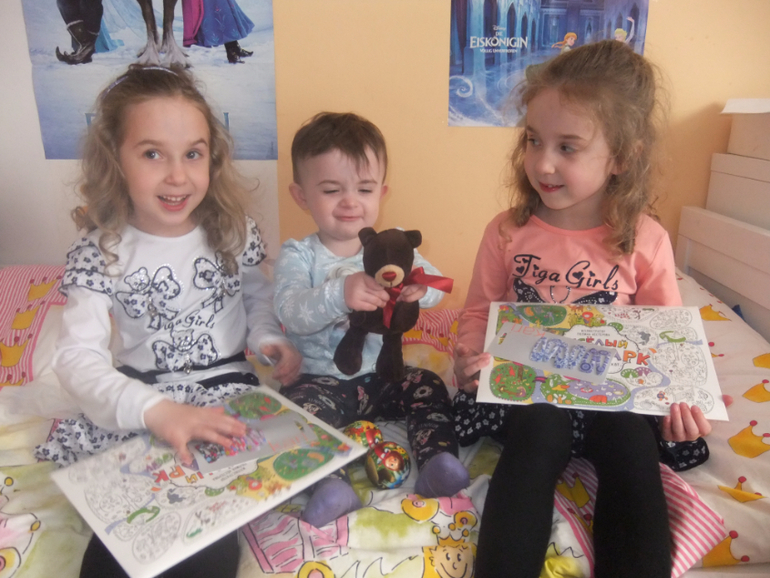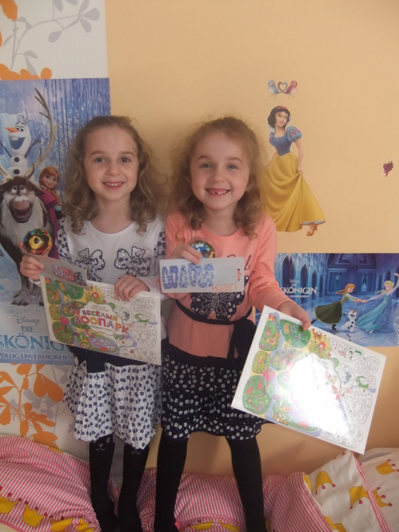 Эх, если бы знала, что девочки вместе будут раскрашивать, то прислала бы разные раскраски. Учту на будущее)