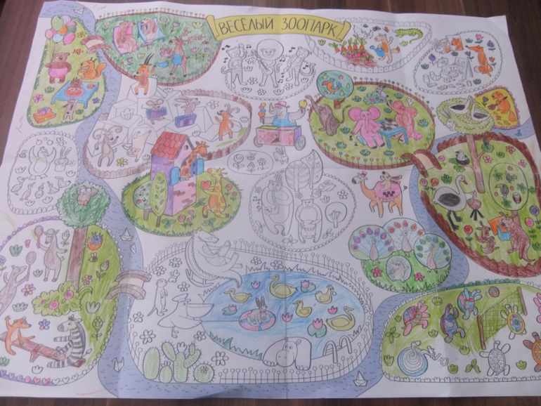 А еще две замечательные раскраски. Мы уже одну начали. Она прям супер классная. Понравилась именно тем, что там мелкие рисунки, рука не сильно устает при раскрашивании. Вот тут наш шедевр, трудились пока болели. Даже маленькая руку приложила.