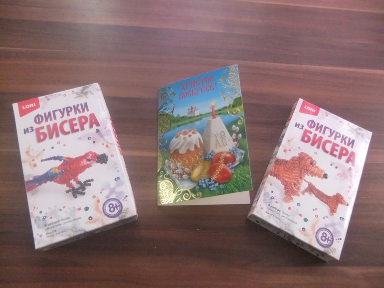 Следуюшими девочки достали вот такую пасхальную открытку с замечательными, добрыми и теплыми пожеланиями от Катюши и вот такие наборы для творчества. Спасибо особенное за них, мы очень любим мастерилки всякие, и обязательно сделаем эти чудесные фигурки.