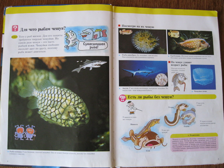 Энциклопедия "Подводный мир" мне вообще понравилась очень - не сложная и не очень примитивная, есть и фотографии и рисунки, информация подается интересно (в форме вопросов-ответов), и она не скучная и не сухая.