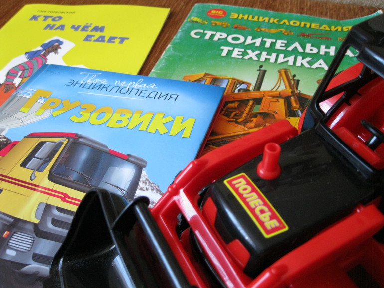 Мусоровозы! Для нас загрузка мусора - таинство, и Костю нельзя никуда утащить, если он встретил на прогулке мусоровоз. Даже "Весенняя книга" Бернер у нас носит кодовое название "Про мусоровоз")