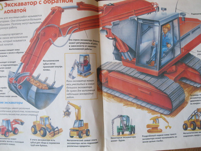 После прочтения этой книги ребенок дал папе простейшее задание - нарисовать землеройную машину палочкой на песке - и, подумать даже страшно, наш папа не справился) Вот и пришли с прогулки оба недовольные - и засели изучать уже вдвоём)