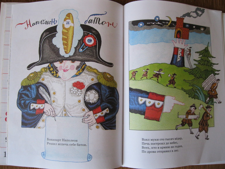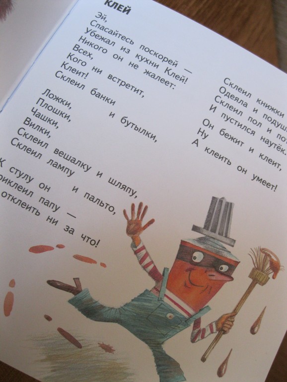 Костя таскает ее для прочтения до сих пор, кое-что запомнил и цитирует к месту и не очень. Стихи из разряда - абсурдная абсурдия, но веселые и не глупые. Иллюстрации из того же разряда, довольно специфические, местами совсем не детские.