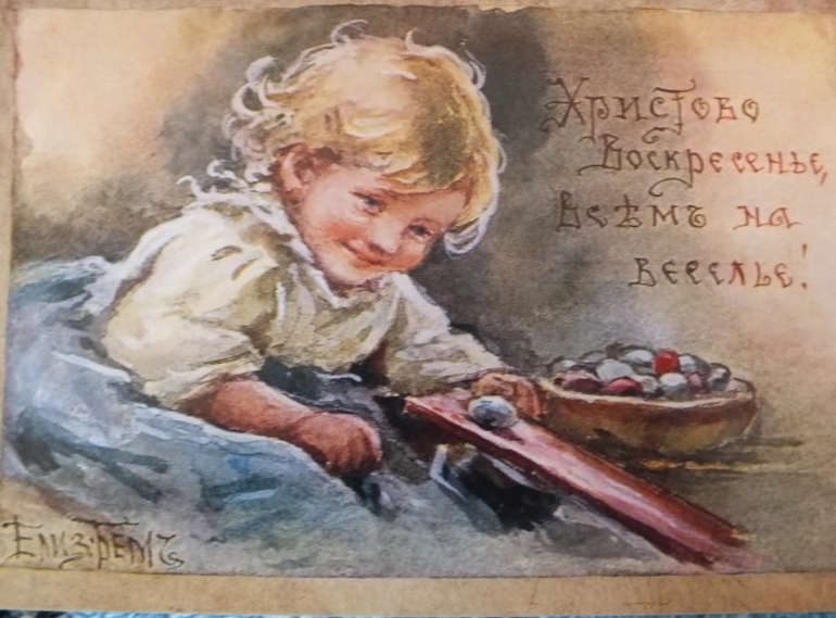Открытка с добрыми пожеланиями к светлому празднику.Когда я собирала посылочку для Юли и ее семьи, напрочь забыла про пасхальную составляющую ФМ.
