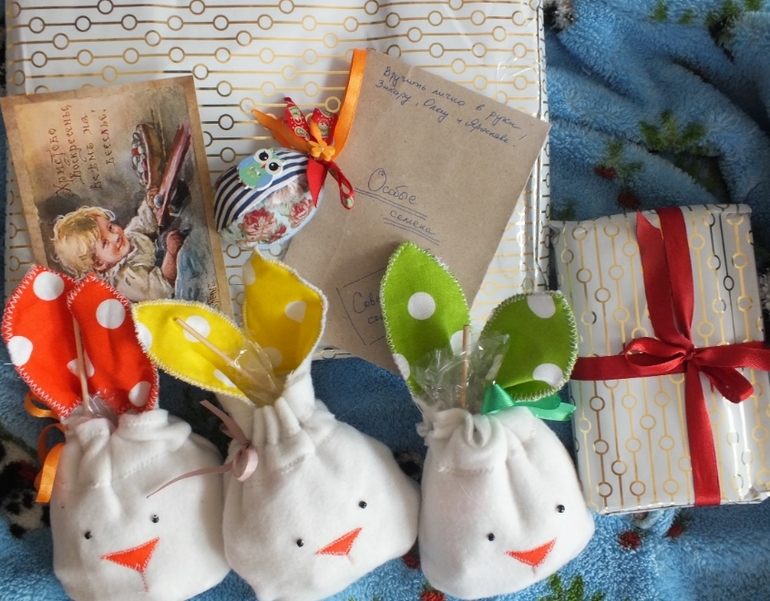 Задержалась просто до неприличия,а ведь получили мы посылочку до Пасхи!Но потом уехали в гости к бабушке, и вернулись только в День победы.Спешу исправится!