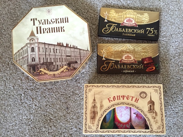 А больше всего меня тронула эта часть посылки: сувениры из Тулы. С щемящим сердцем я рассматривала открытки со знакомыми местами. Ведь Тула - сосед моего родного города и я не раз была там ребенком: то на соревнования приезжала, то с родителями друзей навещали, то со школой на экскурсию в музей самоваров. И, думаю, девочки, живущие за границей, но все еще скучающие по Родине, меня поймут. Сколько воспоминаний, мыслей, эмоций на меня нахлынуло! Да еще шоколадно-пряничный запах, который я почувствовала, только открыв посылку!