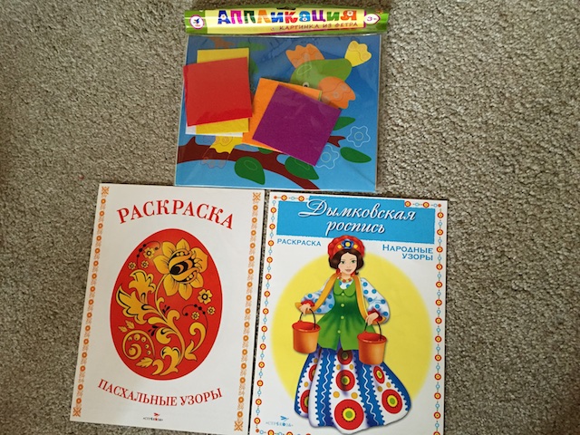 Для Настены Таня прислала замечательную аппликацию из фетра. Дочка очень любит подобные из пенки, здесь такой же принцип, так что она будет в восторге. А еще две раскраски, они просто чудесные, особенно эти девушки в народных костюмах, мне самой захотелось пораскрашивать!