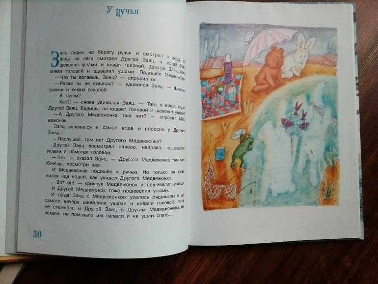 А вот и первое знакомство с кроликами (где-то в полтора года). Позже были перечитаны остальные книги из серии, не успела приобрести только "Встречу с пиратами", так как у нас еще те книги, которые с Онестусом, Горицветиком и т п, а в новом издании другие имена, вот и не захотела уже покупать. Книги любимы, иногда возвращаемся.