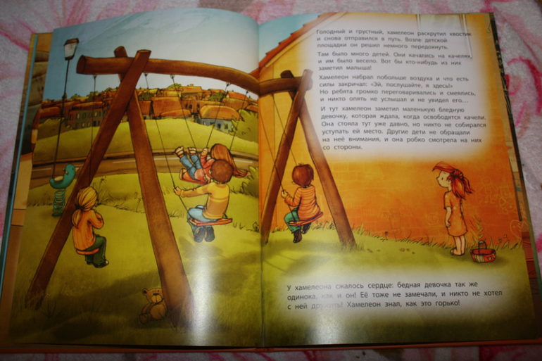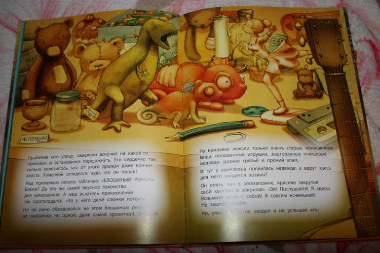 Спасибо Радочке за чудесную цену, мы всей семьей влюбились в прекрасную, светлую историю о дружбе девочки и хамелеончика. Книга о том, какой путь совершил хамелеончик, вырвавшись из зоомагазина, в поисках хозяина. Как он встретил такую же одинокую и незаметную девочку, последовал за ней, ч и что из этого получилось. Нежная нежность... Мои мальчишки очень любят.