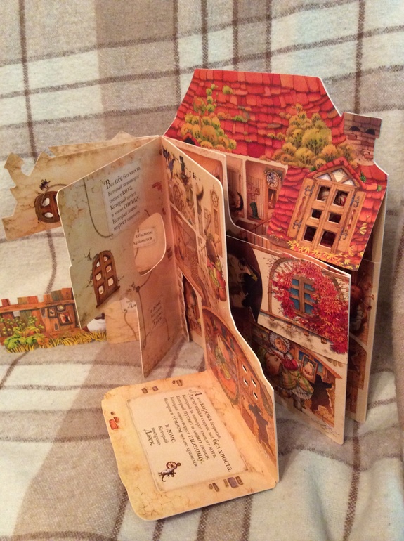Книга-вырубка от Лабиринта нам тоже очень понравилась. Уговорила дочку даже выучить стихотворение, теперь мы по дороге в садик идем и постоянно повторяем эти "которая, который....". У нас есть эта песенка в сборнике и в другом переводе, любопытно сравнивать.