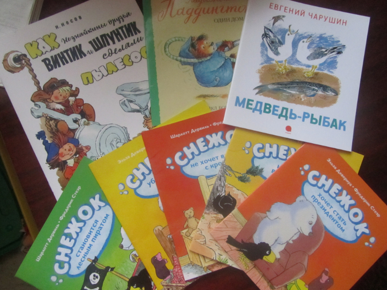 Дочка вдруг вспомнила про медвежонка Снежка, так несколько дней подряд читали все книги по кругу ( в три года он у нас был хитом)