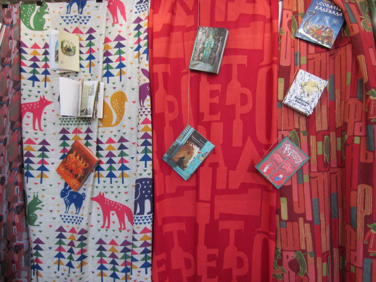 А лично у меня (кроме всех трёх перечисленных причин) была ещё одна радость: рассматривать гобелены, оформившие стенд издательства! Так неожиданно и так необычно! Эти гобелены - дипломные работы студентов кафедры художественного текстиля Санкт-Петербургской государственной художественно-промышленной академии им. А.Л. Штиглица! У меня эти гобелены вызвали чёткую ассоциацию с "Русскими праздниками" Веры Павловой. А что вдохновляло студентов на создание таких сюжетов можно будет узнать уже завтра! В 16.00 на стенде "Речи" будет встреча с зав.кафедрой художественного текстиля Людмилой Васильевной Михайловой и её учениками.