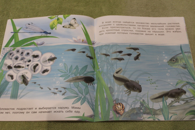 Рисунки реалистичные, информации немного и по делу так сказать. Почему про лягушку? Потому что была такая книга там только про лягушку)) К тому же мы с Юлей уже затрагивали эту тему в книге Сутеева, в сказке про хвосты.