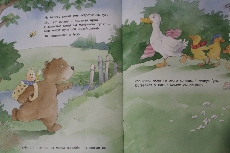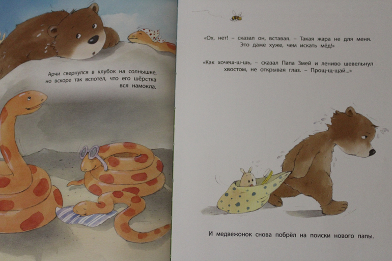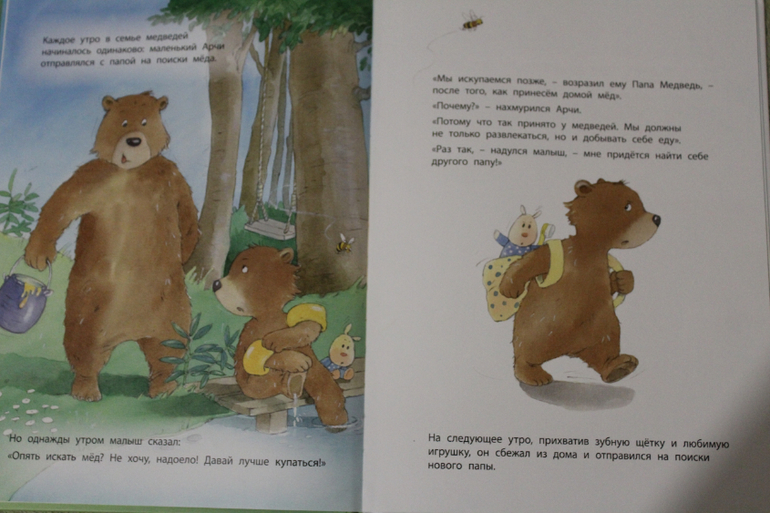 Эта история про маленького мишку, который оказался очень недоволен своим папой и решил уйти искать нового. И, оказалось, что все новые папы ну никак не подходили на роль такого папы, который мишки был нужен, и их, условно говоря, условия "папства" оказывались хуже условий/обязательств у папы Мишки. В общем и история интересная, и поучительные выводы тоже присутствуют.