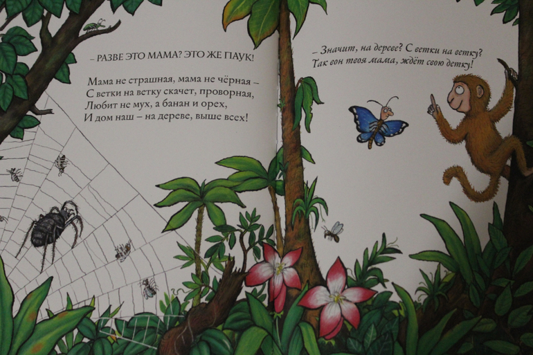 От себя могу сказать, илюстрированные животные реалистичные, что очень хорошо для малышей, которые еще только знакомятся с тем, какие животные есть в природе, об этом я читала очень интересный пост вот здесь . Само стихотворение мне тоже понравилось, все в рифму и складно, и слова все использованы понятные. На мой взгляд, если обсуждать книгу с ребенком, то здесь есть еще очень много моментов для познания окружающего мира. Бивни, хобот у слона, ноги, ходит с топотом (можно даже изобразить как ходит), что слон большой очень, что у змей детеныши вылупляются из яиц, что паук питается мухами, что летучая мышь спит вверх ногами и спит днем, боится света, как появляются мотыльки бабочки, ведь их дети не похожи на бабочек и многое что еще можно обсудить... Конечно эту книгу нельзя использовать вместо энциклопедии, но в дополнение или для того что бы ребенок начал проявлять интерес к данным темам вполне.