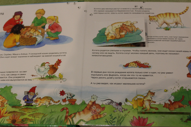 Хочу отметить, книга как раз для нас оказалась в тему. У нас кошка ходила беременная. И мы смотрели в книге что у нее родятся котятки и т.п.