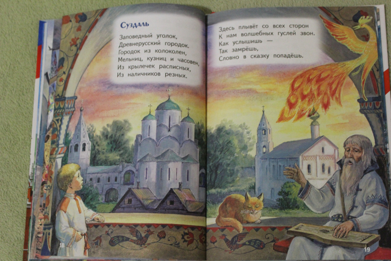 Когда я его увидела на сайте Лабиринта, подумала хорошая вещь, что бы привить любовь к родине. Но впечатление у меня пока о нем невнятное. Стихи мне ранее неизвестные, иллюстрации .. ну как в учебниках моего детства. Мы его читать начали не так давно и всегда читаем максимум 2-3 стихотворения. А вот и немного стихов с иллюстрациями