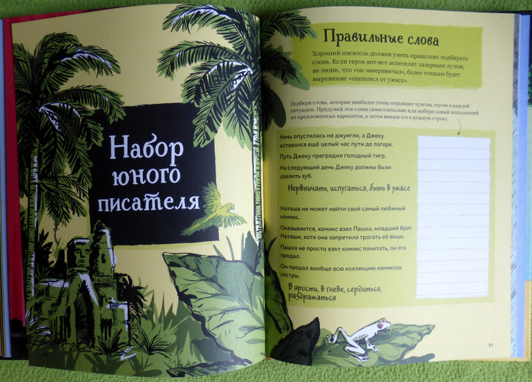 В конце книги «Набор юного писателя» -это копилка идей и хитростей, которыми пользуются профессиональные писатели. Советы из этого раздела научат детей составлять план рассказа и оттачивать свой стиль.