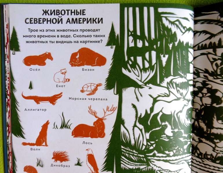Также на этом развороте изображены все животные, которых можно найти на рисунке