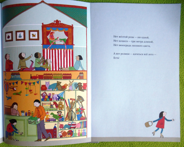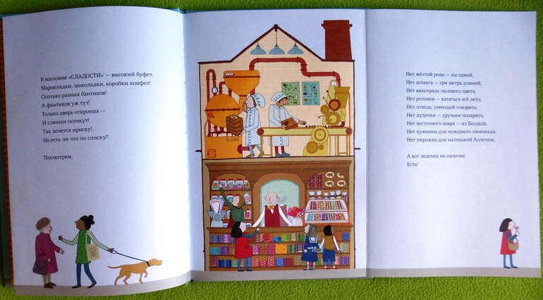 Книга создает массу возможностей для «развивающих диалогов» с ребенком, как по тексту, так и по рисункам. Также по книжке можно выучить порядковый счет до 10, т.к. каждый магазинчик пронумерован.