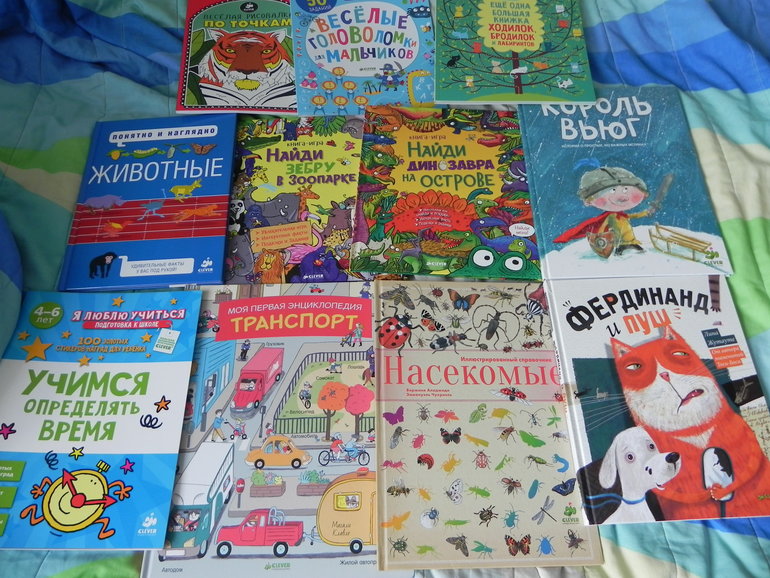 Головоломки и развивалки от клевера старший сын нежно любит - а за такие деньги считаю, что это прям подарок) жалею теперь, что больше не набрала. Книги классные. На Насекомых еще в лабе заглядывалась и динозавры в корзине лежали, а тут так дешево.