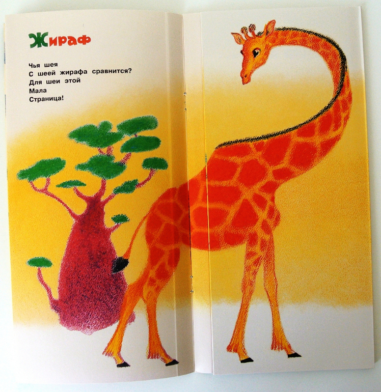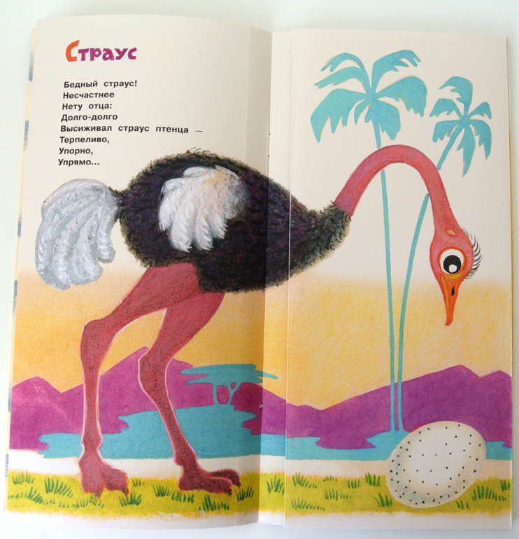 Прочли один раз. Понравилось. Еще будем читать? Да! - уверенно ответила дочь и уже сама захотела переворачивать и раскрывать страницы. На развороте со страусом (запомнила же!) опередила меня и прощебетала: "Де мама???"