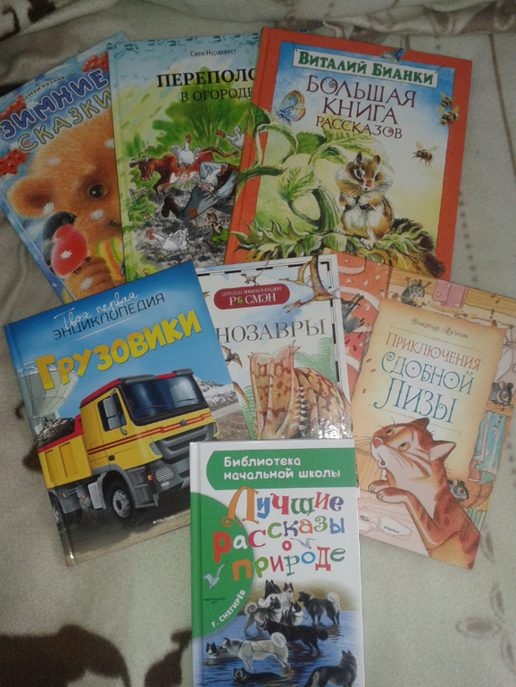На втором фото левая вверху - зимние сказки - ужасная книга! У нас есть(( Прочитайте сказу про рысь, это кошмар в детской книге. Я потом купила Сказки про ежика и медвежонка, вот там настоящие.