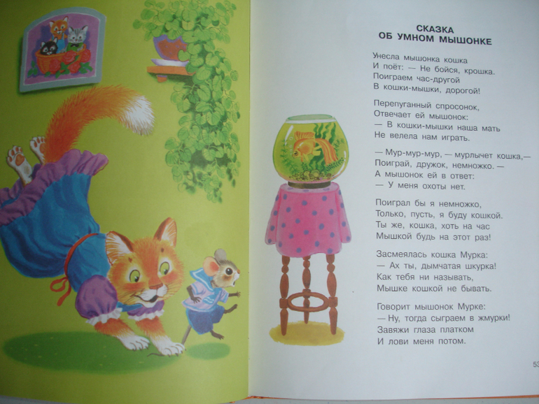 Сказки тоже самые привычные в привычной обработке. Их мы часто пропускаем (это касается русских народных). Но есть тут три чудесные сказки, из-за которых Саня приносит эту книгу даже не в поездках - «Колосок» , «У солнышка в гостях» и «Горшочек каши». Про первую Саня говорит: «давай па мысей - Туть и Вить». Да, чудесные Круть и Верть. И сказка поучительная, про то, что «кто не работает, тот не ест». Забегая вперёд, скажу, что теперь у нас появилась ещё "Курочка-хлопотунья", очень похожа.