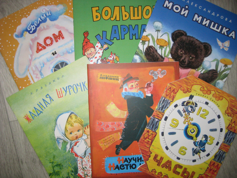 Спасибо! Квитко с Конашевичем я бы тоже хотела новенькую, наша на 8 с. только и рассыпается уже( Прячутся Сестрица Аленушка и братец Иванушка ( Шеварев) и По щучьему веленью ( Елисеев). И мне Горбачев очень нравится, про Дракончика тоже серия, наверное, есть как и про Хрюшу.