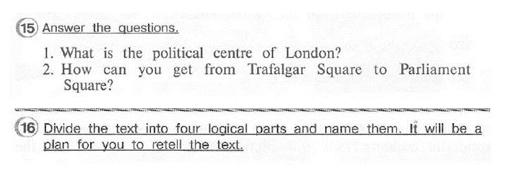 Согласитесь, сложно придумать вопросы для предварительного обсуждения на подобную тему. Авторы вопросы тоже не придумали, а предложили сразу переходить к делу. Дети прочитали, получили информацию. Можно ли теперь что-то обсудить? Снова нет: обсудить можно то, о чем составлено личное мнение, имеется какой-то опыт. А у четвероклассника какое может быть мнение по поводу Вестминстерского аббатства? Остается только одно: пересказ. К пересказу мы и приходим после прочтения текста: сначала отвечаем на вопросы по тексту (пересказ с опорой), а потом опору убираем и пересказываем снова.