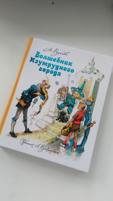 Мой путь к чтению начался с папы и Волшебника изумрудного города. Мне было 5 лет. Мне так нравилось, что в 5.5 я уже училась читать. Нет, мне и раньше читали, каждый день. Но эта книга нравилась особо, я до сих пор ее люблю. У меня был экземпляр, но настолько убогий (остался от мужниного детства) что я не хотела его видеть. И вот пошла я мужу Докинза докупить и увидела ее. Эта была та книга, из детства. Я уехала, долго думая, вроде же есть. Но все внутри было настроено купить. И я отправила мужа за ней. Через час она была моя. На полке была одна в таком исполнении. С другими иллюстрациями полно, но все не то. И пусть нам сейчас только год и четыре месяца, я верю она понравится.