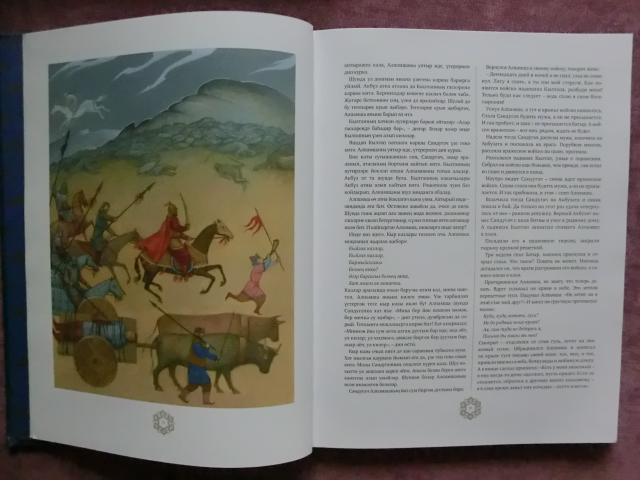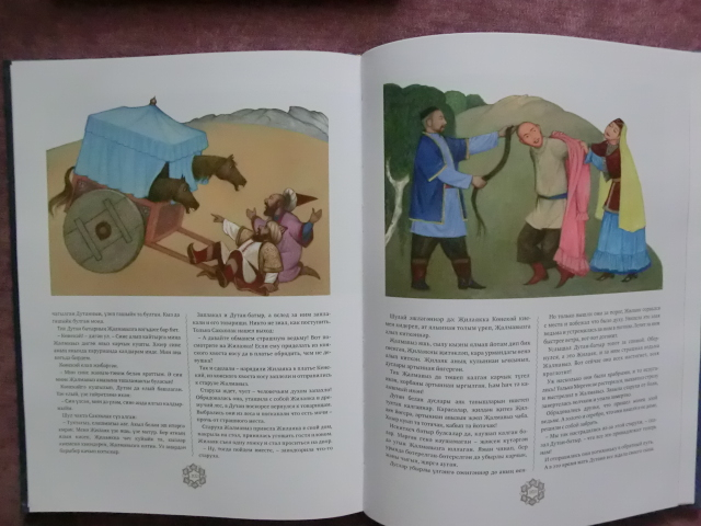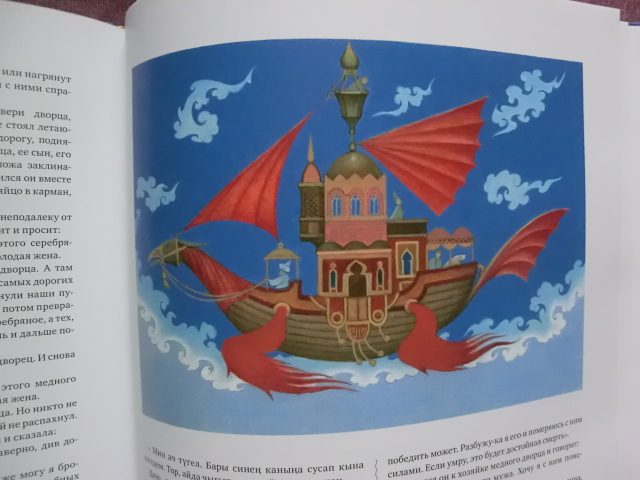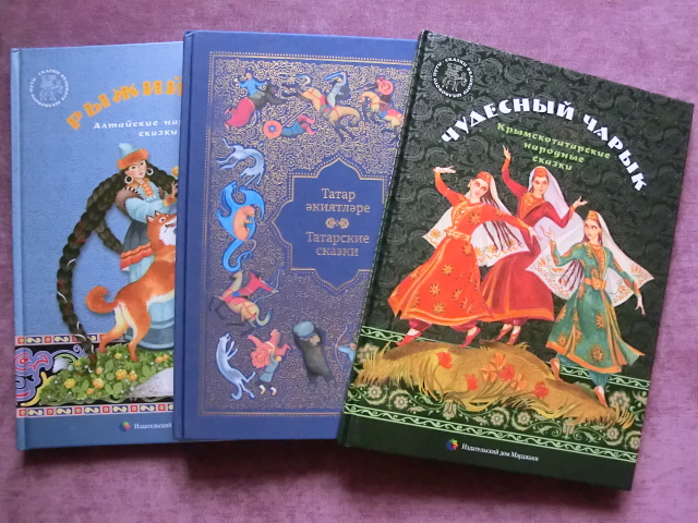 Очень давно смотрела в сторону издательства Марджани. Но доступно по ценам и посмотреть "вживую" на книги стало возможно только на этом Книжном салоне.Книги издательства понравились. Приобрела три этих книги. Остановлюсь на средней. Татарские сказки. Книга оформлена на двух языках, родном и русском. Обложка шелковая,выглядит строго,но очень эффектно. Сказки даны в современном переложении,но носителями культуры. Иллюстрации не особо броские,но при прочтении очень удачно вписываются в сюжетную линию и поддерживают общий стиль оформления. Сюжеты "пыльных дорог" присутствуют,но они хитро и витиевато переплетены между собой и наполнены национальным колоритом. К книге прилагается диск со сказкой в исп. С.Шакурова. Также есть пергаментная вкладка с посвящением. Для библиотеки сказок считаю очень хорошим приобретением.
