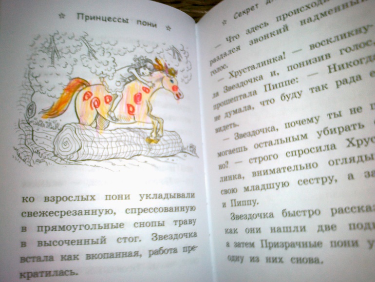 А книжки эти - просто сокровище для девчонок, которые любят принцесс, лошадей и увлекательные приключения! Правда, я не ожидала такой бурной радостной реакции. Когда Соня и папа купили сегодня очередную книгу из серии, она всю дорогу до дома скакала, визжала и пританцовывала, носилась с этой книжкой как с писаной торбой...