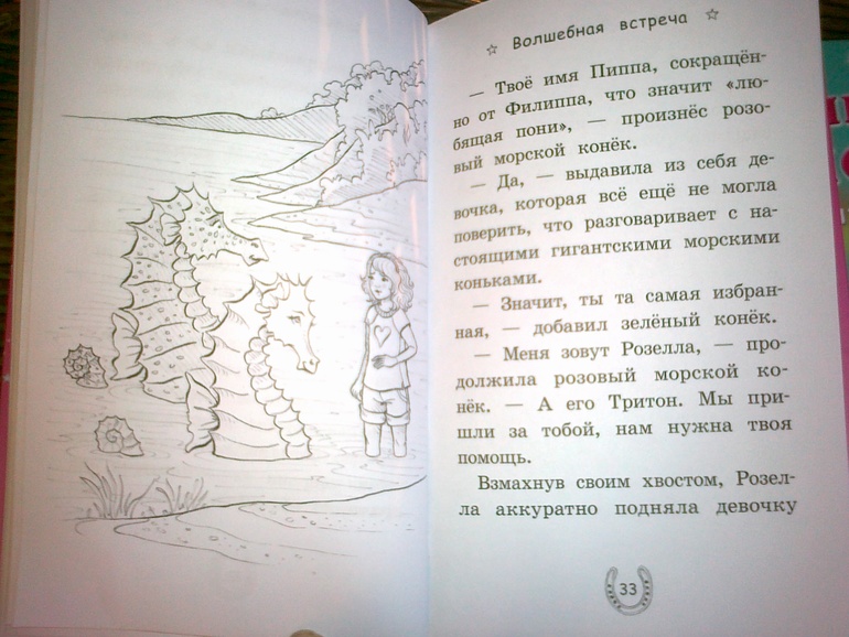 ...Вроде обычная маленькая девочка Пиппа, в комнате которой вся стена обклеена постерами с пони, вдруг совершенно необычным, более того - сказочным образом попадает в удивительную историю. Она - избранная! Её миссия - спасти неведомый остров Шевалия, где живут сказочные, но вполне настоящие пони. И если она не справится - остров перестанет существовать! Но как она туда попадёт, что случилось на острове, и как Пиппа будет справляться с возложенной на неё задачей - лучше почитать самим! Написано достаточно, хорошо, увлекательно, хотя и пару раз мне встретились небольшие ошибочки (но впечатления это не портит, тем более, что у ребёнка - глаза горят огнём!)