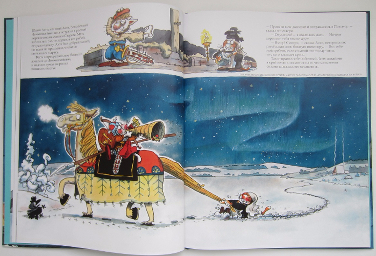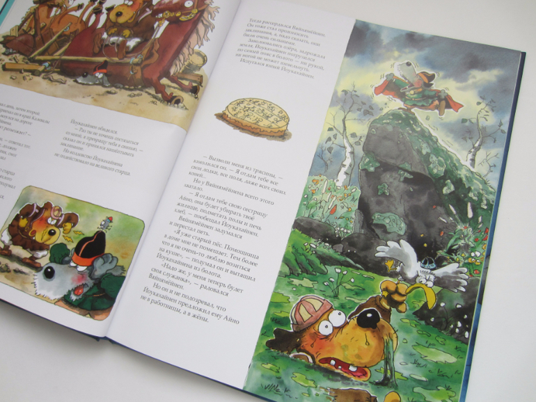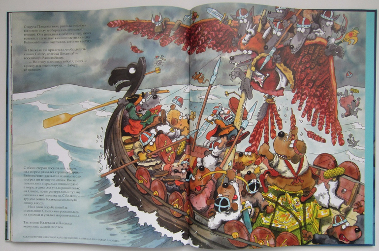 Увлекательным и весёлым было моё чтение! Естественно, способствовали этому рисунки Маури и Тарьи Куннас к Собачьему национальному эпосу. Как обычно, в работах Маури Куннаса простор для озорных проделок и весёлых шалостей:
