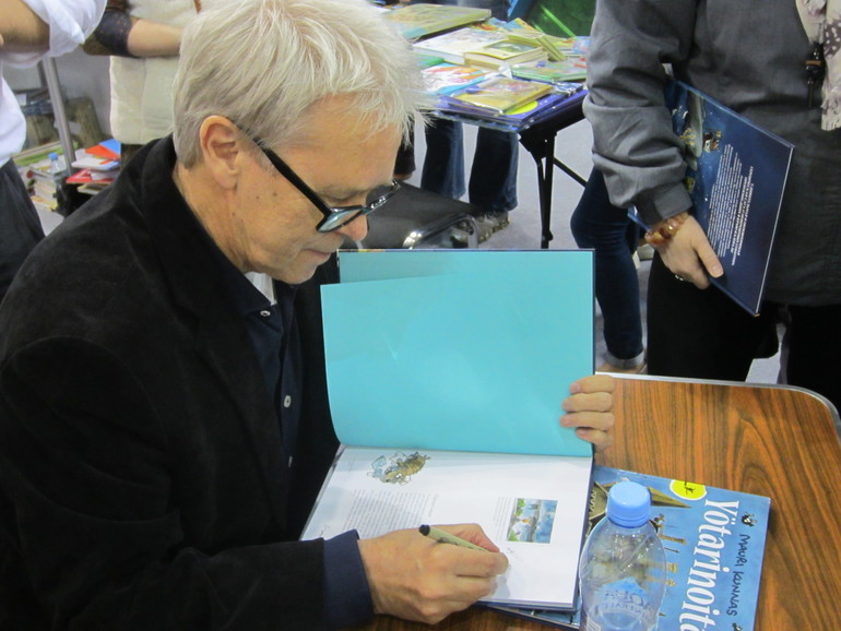 И бонусом: Маури рисует автограф на "Собачьей Калевале"