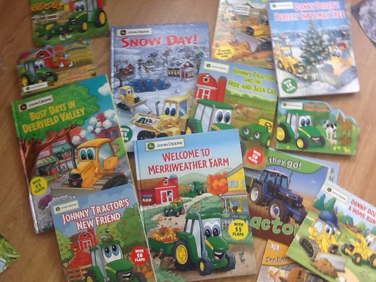 Как мне кажется, в Канаде вы можете разжиться книгами на любой мальчишеский вкус. Моя сестра присылала мне книги из Канады. Например, когда старший интересовался стр.техникой и тракторами прислала вот такие (я их рассказывала в моем вольном переводе по русски) на фото не все , есть много других. Только Беатрис Поттер я с листа переводить не осилила. Много неизвестных слов и не получается у меня связанный красивый текст :(