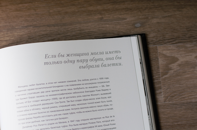 Книга большая, тяжелая. Дизайн, верстка, полиграфия - все на высоте. Прочитать еще не успела, но пролистала с большим удовольствие. Такое приятное погружение в прошлую жизнь, когда высокий каблук и платье были не из ряда вон выходящим событием, а будничной жизнью. Теперь все не так. Теперь мои друзья балетки (кстати, о них в книге тоже есть) и шорты. Но это тоже не плохо, если сильно зажмуриться и посмотреть на мою жизнь издали, то получится, что я постоянный отпускник. Действительно же лучше, чем обидное слово «домохозяйка».