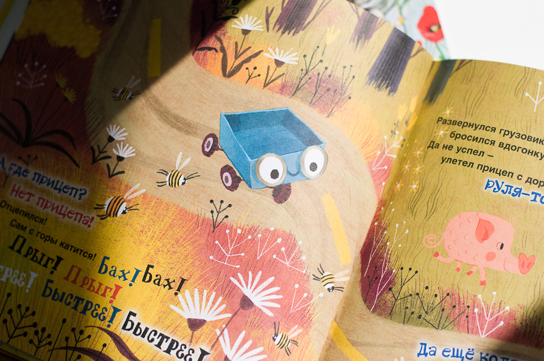 Книга издана отлично. Шикарные иллюстрации, на форзаце карта всего путешествия дружной парочки. Очень жаль, что автомобильных книг издается так мало, они все на вес золота у мам мальчишек! И да, я все еще плачу по книгам Кефалиди.