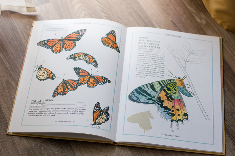 Иллюстрированный справочник про насекомых меня не впечатлил. Увеличенный формат, приглушенные цвета рисунков.