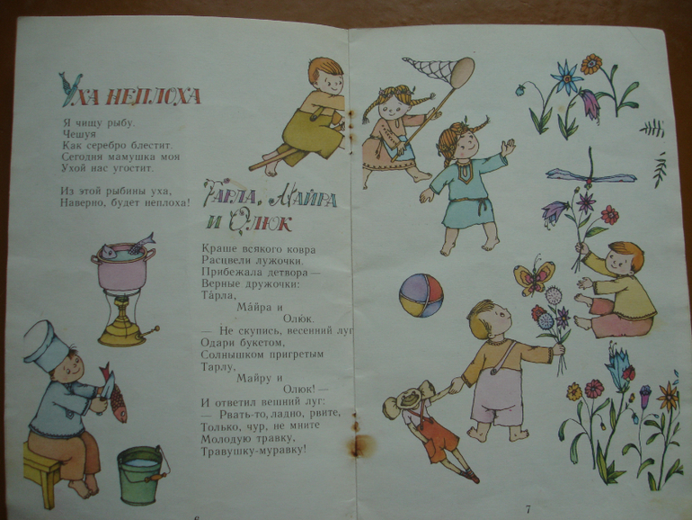 "Кузнец-удалец" - необычные иллюстрации и необычные стихи - вольный перевод с марийского. Думала, Сане больше понравится стих про кузнеца или одна из песен, но неожиданно самым любимым стихом (который мы, бывает, читаем по 5 раз подряд) оказался стих про то, как дети пошли собирать цветы на вешний луг. Я могу только предполагать, что Тарла и Майра - девочки, а Олюк - мальчик.
