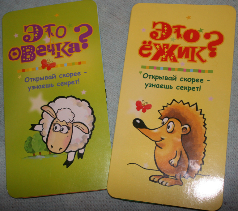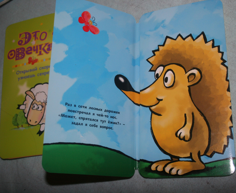 Ламинированные раскладушки. Брала "на сдачу", так сказать, во время акции. Где-то по 7 грн они вышли. думала, может, подарю кому. Пока думала, младший добрался, и теперь нежно любит. Читаем по 8 раз (рекорд) подряд. Особенно нравится ежик, т.к. в нем текст милозвучней и конкретнее. В овечке - расплывчатая лирика..