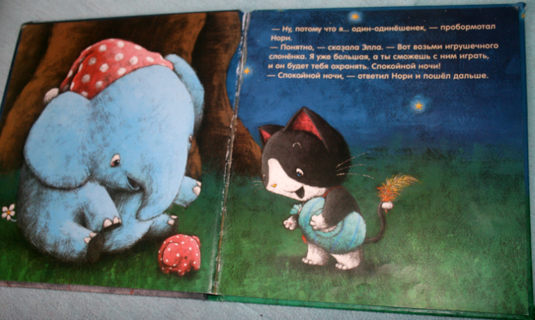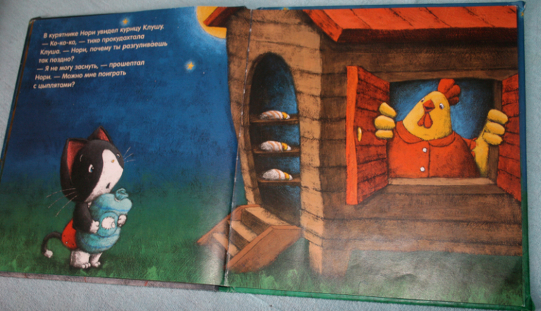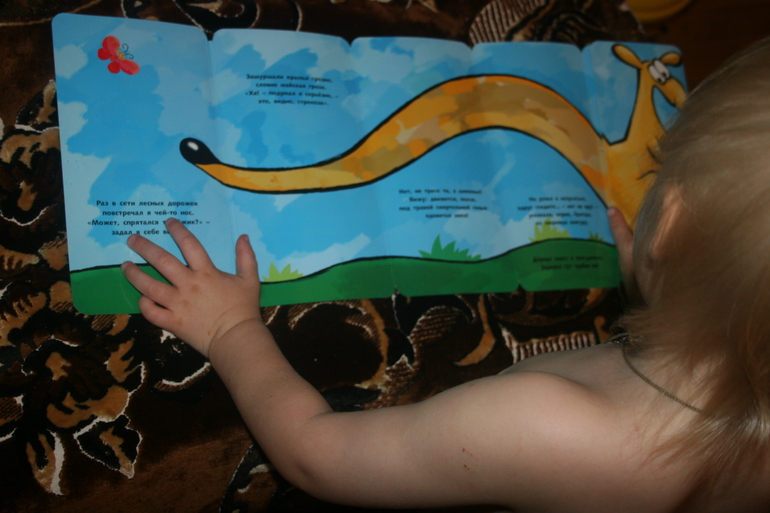 Ее минус в том, что когда ребенок хватает за угол переплета, корешок начинает отставать. Плюс - в красоте и остальной крепости. Первая "серьезная" книга, понравившаяся ребенку. С года точно ее любит. Но не скажу, что слушает. Воспринимает, как красивую игрушку-листалку. Ну и ладно. Книгу как раз именно ему и покупала.