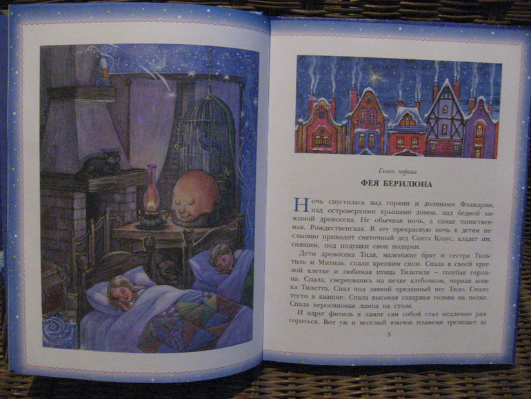 Вот эта коротенькая строчка из песни и сам призыв идти за чем-то загадочным куда-то в неизведанное - это всё, что сохранила моя детская память о сказочной феерии Мориса Метерлинка... И даже это малюсенькое воспоминание было запрятано где-то очень-очень глубоко... Собирая библиотеку для Сони, я почему-то ни разу об этом произведении не вспомнила. Пока мне не напомнила о нём...Соня! В одно из наших путешествий по Читай-городу (наш папа почему-то упорно называет его Пиши-Читаем, а Соня каждый раз веселится и так же упорно его поправляет: "Город-Читай!")) она вытянула с полки книгу с изображением на обложке огромной птицы цвета ультрамарин, и с тех пор ей (читай "мне") не было покоя.![]()