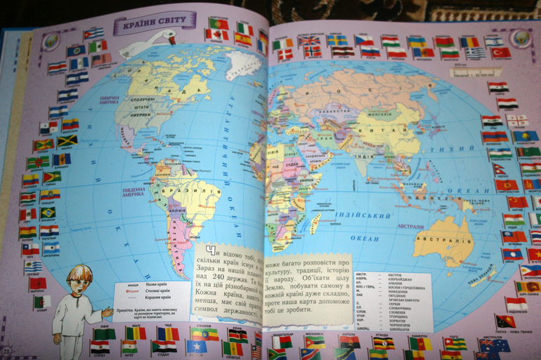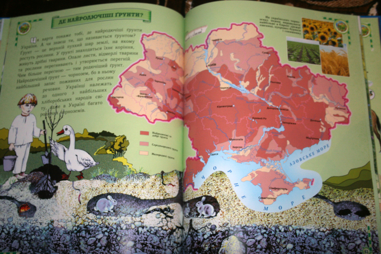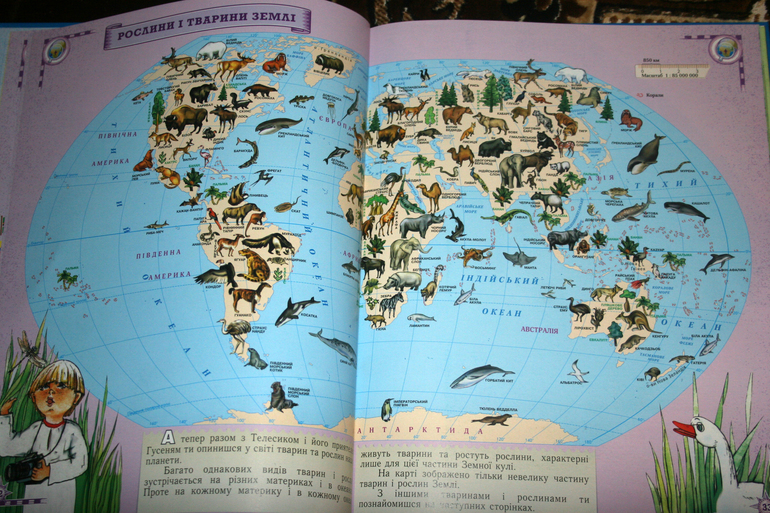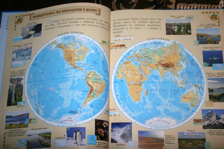 Удивительно классная книга. Подарок друзей детям на Рождество. Качественное ,красивое, грамотное пособие по географии страны и мира. Такая энциклопедия всего. С картами, животным-растительным миром, космосом... Есть карты с ископаемыми и карты с животными, карты рек, грунтов и даже сказок. Больше всего информации о родном крае. Вот такое чудо.