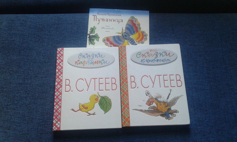 Посмотрела я на наше чтение и поняла, что переводная литература нас захватила. И взялась за Чуковского. "Айболит" нравится, остальными пока не прониклись. Еще читали "Муху-цокотуху" из другого сборника- тоже не пошла. Сказки Сутеева очень нравятся мне, сыну чуть меньше, но читаем часто.