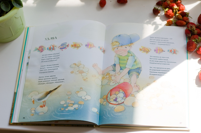 А еще есть песенка про булочную, стихотворения о ветрянке, щах, июньский рынок и камешки. Конечно, какое море без камешков? Чувствуете, да, как море меня к себе тянет?