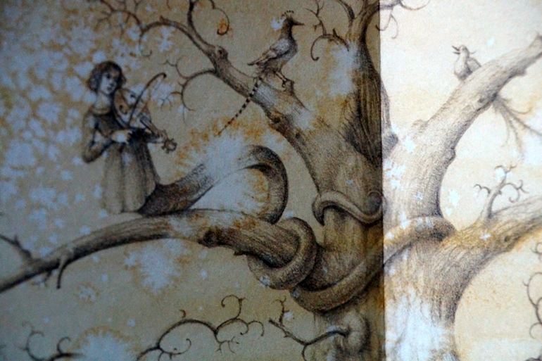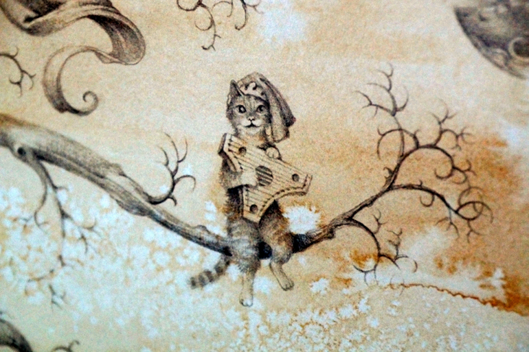 Ну и вот, собственно ради чего всё -Златовласка, книжка купленная из корыстных соображений в киберпонедельник). Я думала что иллюстрации ребенку не понравятся, слишком взрослые, это очень модно в последнее время(. Но нет, понравились и даже очень. Ну а мне форзац понравился, сказочный такой . Читали Нарнию? ,вот как тот проводник между всеми мирами видится мне эта картинка, пойдешь направо- там котик тебе сказку намурлыкает, там чудеса. там леший(ну или кто-то ещё) бродит, следы невиданных зверей...