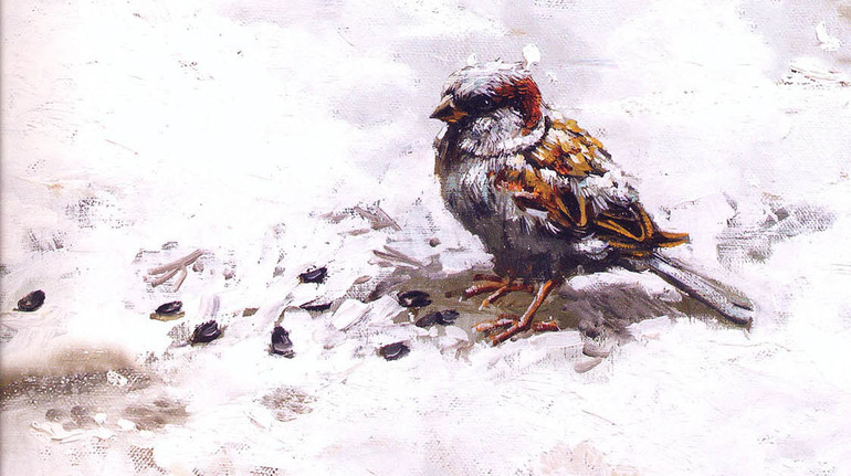 9. Ах, какой воробей на снегу у Марии Павловой в "Елка, кот и Новый год"