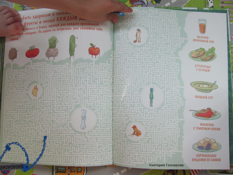 В конце книги разворот с лабиринтом. Сложновато, я вам скажу. Всего в книге 32 страницы.